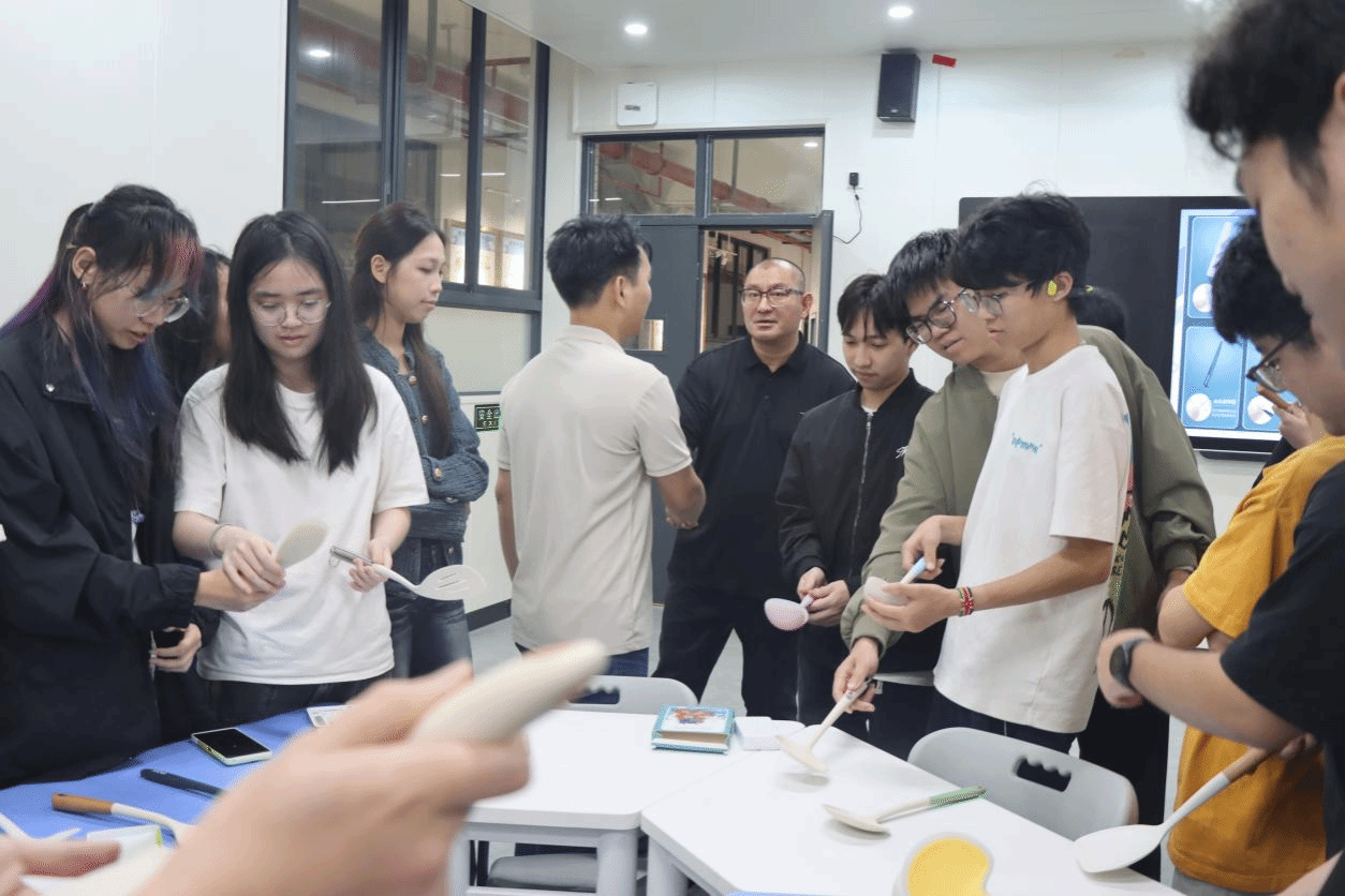 为让师生更直观了解行业前沿动态,同步开展了专题报告环节。产品设计系师生代表,认真听取了精诚智科技邱锦炫经理带来的专题分享。邱经理围绕硅胶家居用品、美容套件的产品设计,结合企业实战经验,深入解析了行业市场现状、消费趋势、设计要点及研发方向,从材质选型、功能优化到外观创意进行细致拆解,为师生搭建了理论与实践对接的桥梁。报告结束后,师生们积极与邱锦炫经理互动交流,围绕产品设计细节、行业就业机遇、创新设计思路等话题展开深入探讨,现场氛围热烈,师生们均表示收获颇丰。